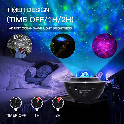 10 verlichtingsmodi: Sterrenlichten en 4 kleurrijke lichten (wit, blauw, rood, groen) die tot 10 verlichtingsmodi bieden. Onze sterrenprojector kan lichteffecten met solide of veelkleurige oceaangolven projecteren en het sterrenlicht kan een sterrenveld projecteren, verschillende kleuren en dynamische projecties van de dromen worden op verschillende snelheden gecombineerd.